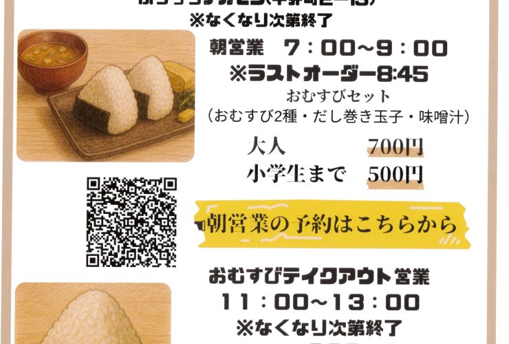 まんまむすび 朝食7:00-9:00 昼(テイクアウト)11:00-13:0...