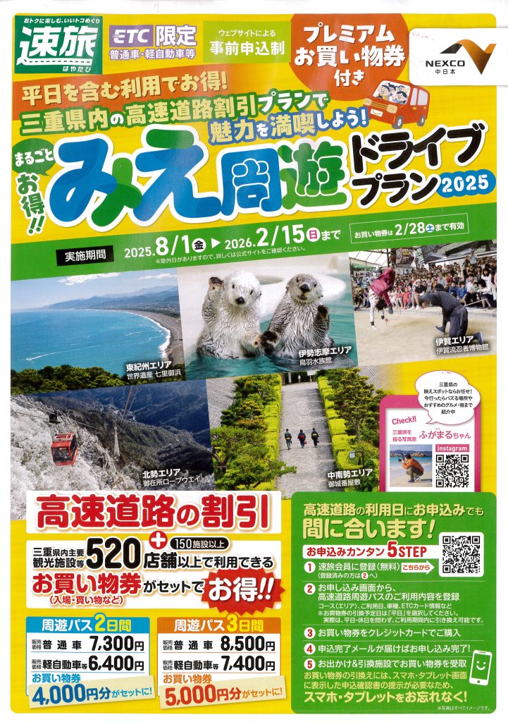 みえ周遊ドライブプラン2025 【高速道路割引プラン】 2026.2.15まで