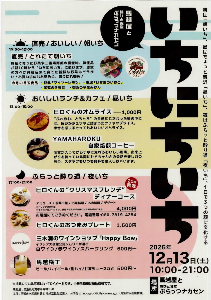直売!おいしい!朝いち! 10:00-12:00 場所:馬越屋
