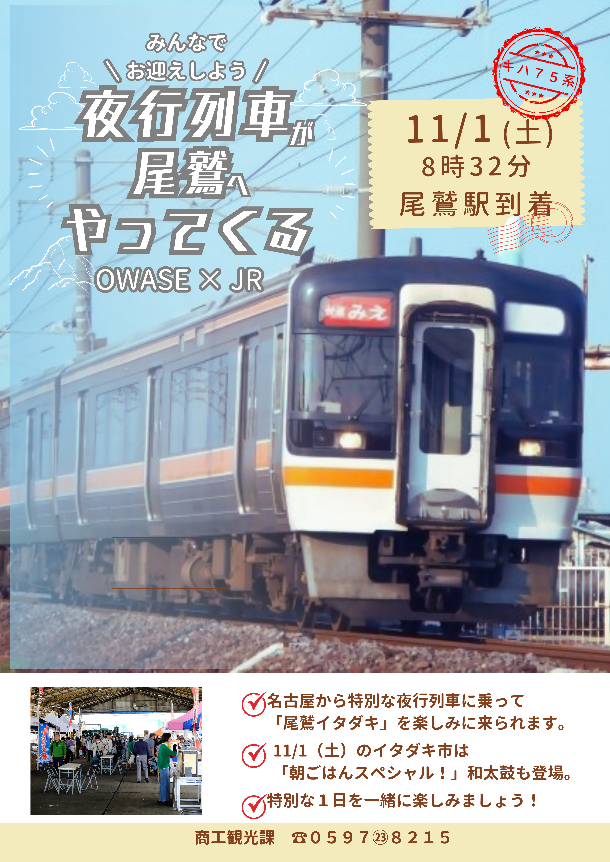 夜行列車到着:11月1日(土)午前8時32分ごろ尾鷲駅着