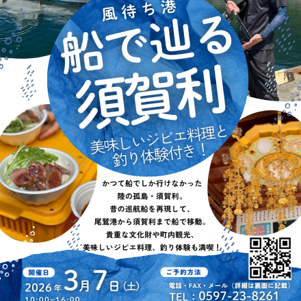 3/7 「風待ち港 船で辿る須賀利ツアー」を実施します~美味しいジビエ料理と釣り体験付き!~