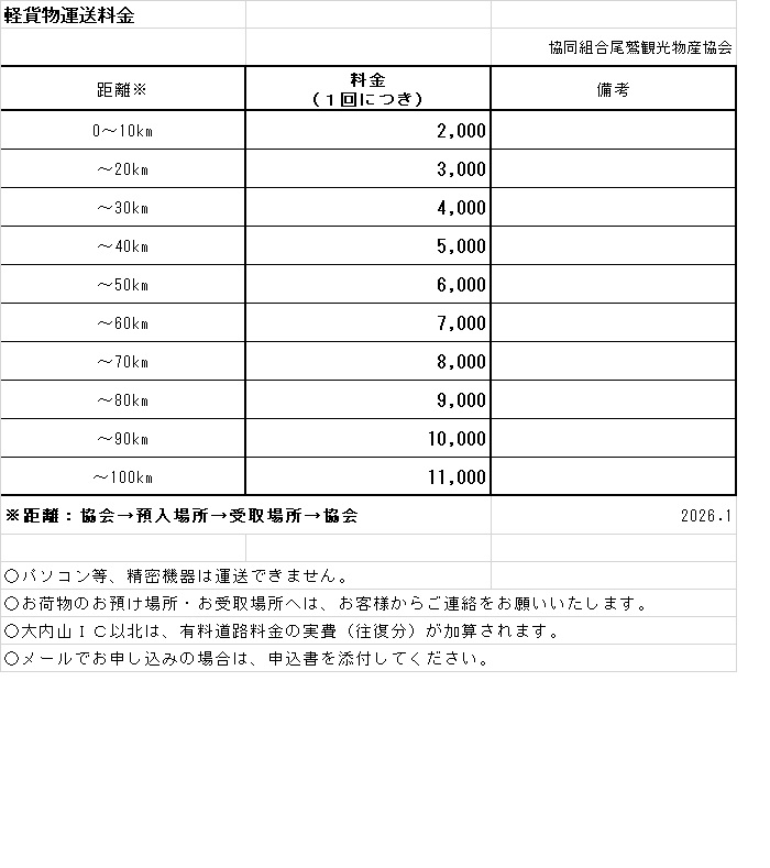○手荷物配送(尾鷲観光物産協会~宿泊施設等)
