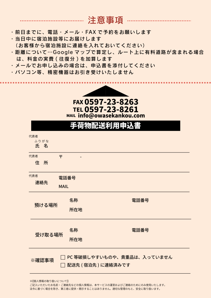 ○手荷物配送(尾鷲観光物産協会 → 宿泊施設等)